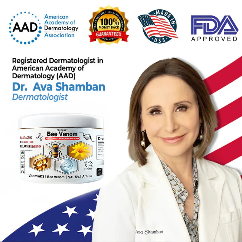 Como dermatologista, sempre fui apaixonada por encontrar soluções naturais e eficazes para problemas de pele. Após extensas pesquisas e testes com minha equipe de laboratório, além de ensaios clínicos envolvendo mais de 2.000 participantes, descobri que o 𝐛𝐞𝐞 𝐯𝐞𝐧𝐨𝐦 é um ingrediente natural poderoso para tratar uma ampla gama de problemas de pele. Isso me levou a criar o 𝑻𝑶𝑫𝑨𝑯𝑶𝑭™ 𝑩𝒆𝒆 𝑽𝒆𝒏𝒐𝒎 𝑴𝒖𝒍𝒕𝒊-𝑺𝒚𝒎𝒑𝒕𝒐𝒎 𝑺𝒌𝒊𝒏 𝑻𝒓𝒆𝒂𝒕𝒎𝒆𝒏𝒕 𝑪𝒓𝒆𝒂𝒎 — uma solução completa projetada para aliviar de forma natural e eficaz diversos problemas de pele com precisão." - Dra. Kylea Allora, MD. Dermatologista