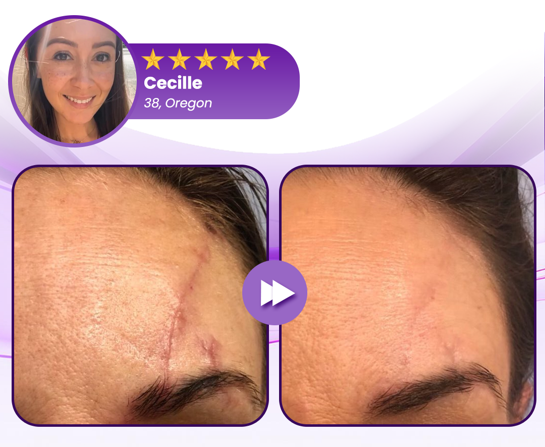 "Eu tinha uma cicatriz visível na testa depois de um acidente, e isso sempre me deixou constrangido. Depois de usar o LAOZIK™ RevivaDerma por apenas algumas semanas, notei que a proteção contida e a cicatriz ficaram mais lisa e menos saliente. Agora, ela se adapta muito melhor à minha pele. Finalmente me sinto confortável para sair de casa sem maquiagem. Este gel realmente me devolveu a confiança!" - Cecille, 38, Oregon