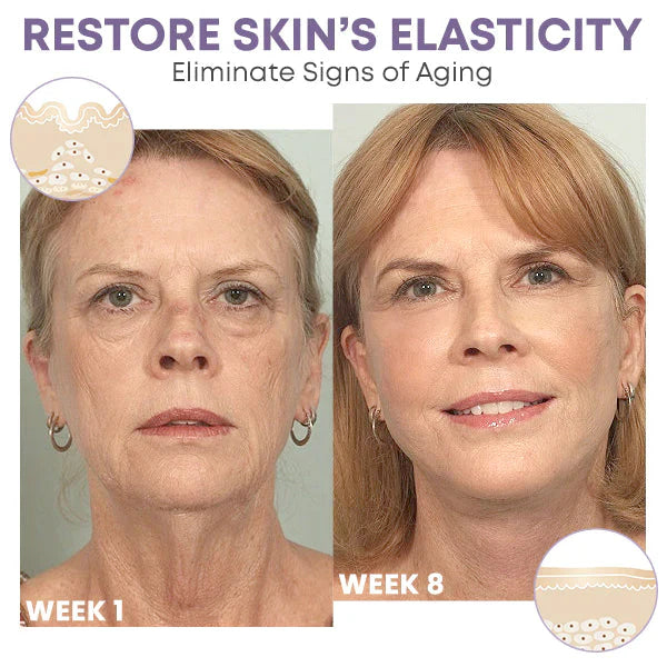 "Meu marido me trocou por uma mulher mais jovem porque disse que eu estava ficando velha. Então, prometi a ele que me vingaria com uma pele jovem e sem rugas. Este sérum me ajudou a conseguir isso em apenas 10 semanas!"